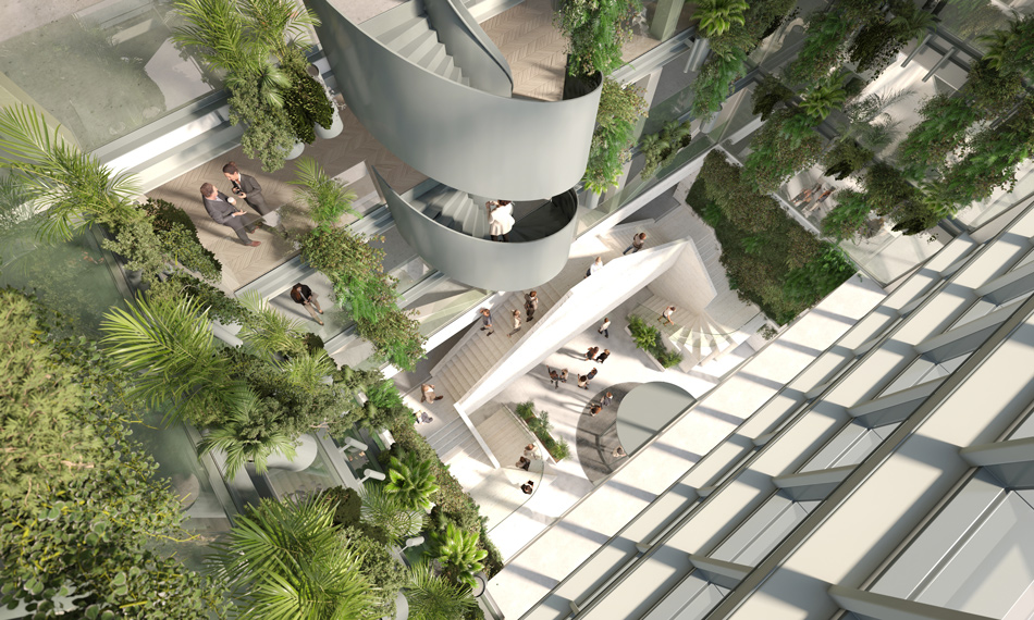 Duurzaam denken is geen exclusieve kwaliteit meer, maar een absolute voorwaarde in alles wat je doet. 2024 wordt het duurzaamste kantoor dat je op dit moment kunt realiseren. Dat geldt voor elk aspect van het ontwerp, de keuze voor materialen en de uitvoering van alle techniek. En dus hergebruiken we het natuursteen van de huidige gevels in het atrium en kiezen we voor hout voor de afwerking. Maar er is meer.